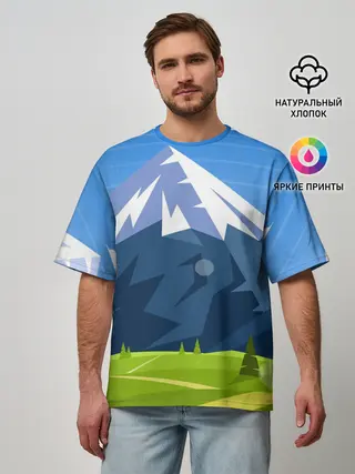Мужская футболка оверсайз / Горы пейзаж природа вектор