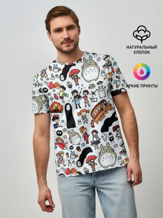 Мужская футболка оверсайз / Персонажи Миядзаки паттерн