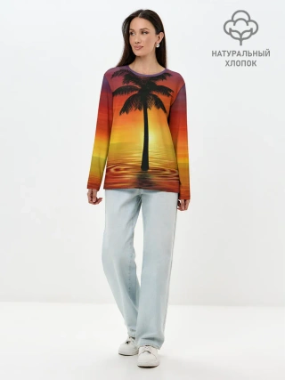 Лонгслив женский. Хлопок / ТРОПИЧЕСКИЕ ПАЛЬМЫ.