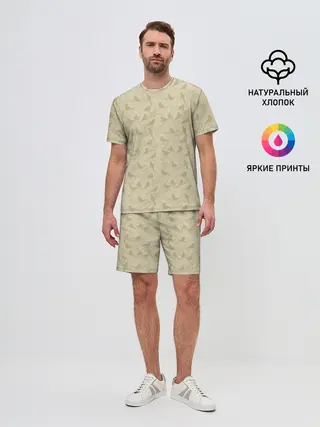 Мужской костюм с шортами / Бежевый принт силуэты птичек