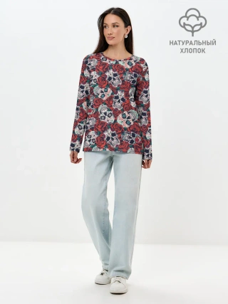 Лонгслив женский. Хлопок / Тату черепа и розы