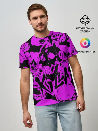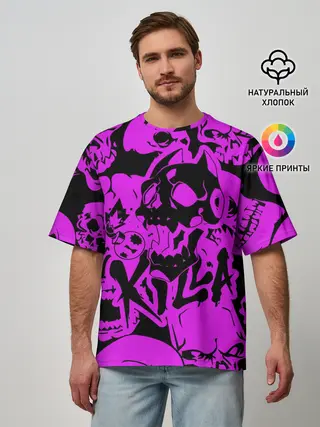 Мужская футболка оверсайз / KILLA фиолетовые черепа