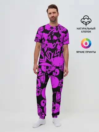 Мужская пижама с брюками / KILLA фиолетовые черепа