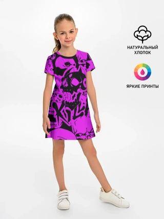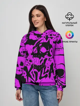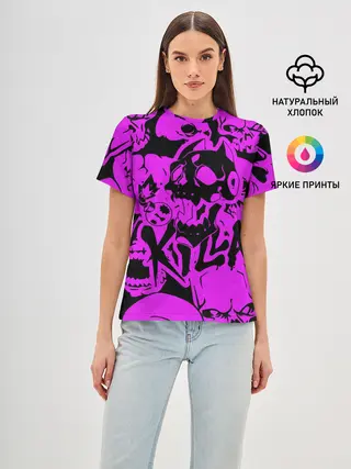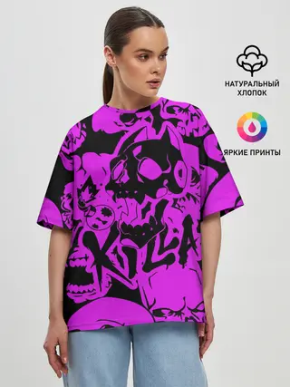 Женская футболка оверсайз / KILLA фиолетовые черепа
