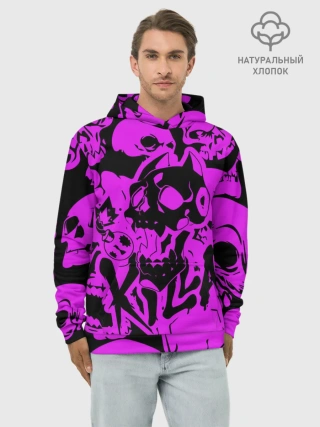 Худи мужской база хлопок / KILLA фиолетовые черепа
