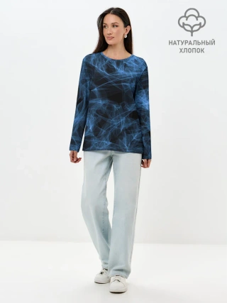 Лонгслив женский. Хлопок / Синяя паутина