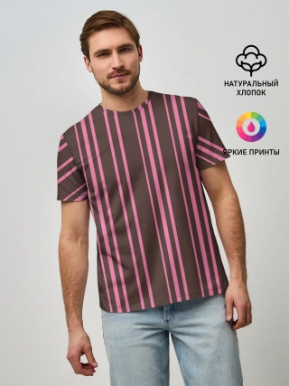 Мужская базовая футболка / Чёрно-розовые линии