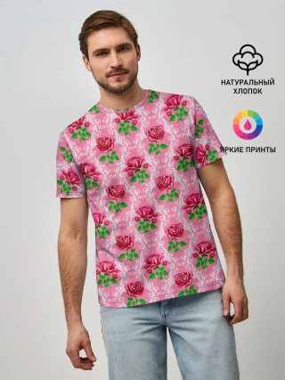 Мужская базовая футболка / Декор из нежных роз