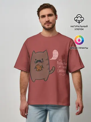 Мужская футболка оверсайз / Котик любит печеньки