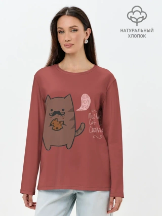Лонгслив женский. Хлопок / Котик любит печеньки