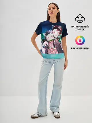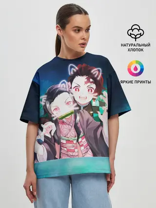 Женская футболка оверсайз / Убийца демонов милые брат и сестра