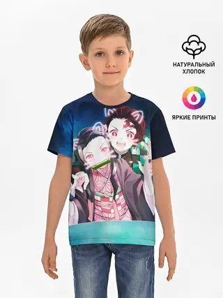Детская базовая футболка / Убийца демонов милые брат и сестра