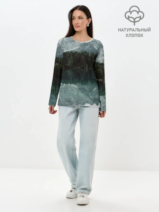 Лонгслив женский. Хлопок / отражение горы в озере