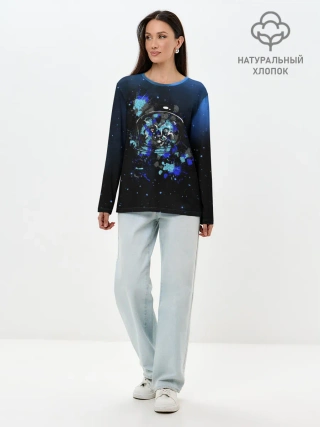 Лонгслив женский. Хлопок / Космический кот