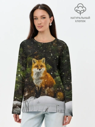 Лонгслив женский. Хлопок / Лиса и снег