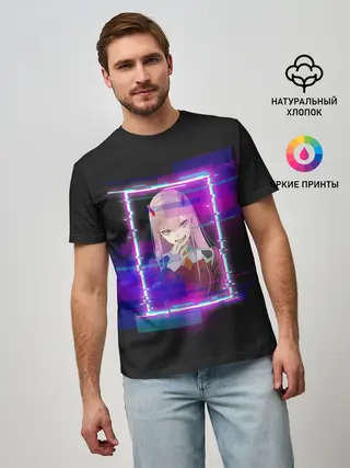 Мужская базовая футболка / Ноль Два. Неоновая Рамка