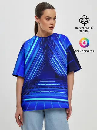 Женская футболка оверсайз / Неоновый тоннель