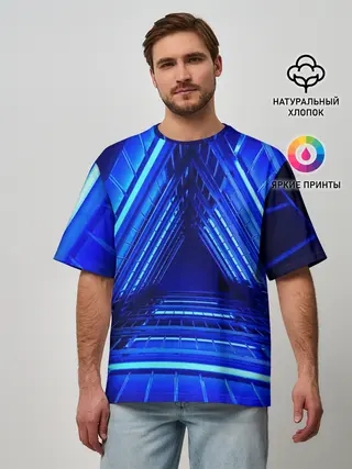 Мужская футболка оверсайз / Неоновый тоннель