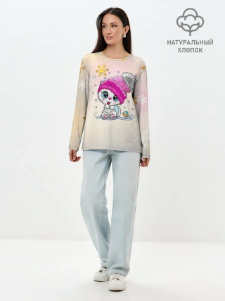 Лонгслив женский. Хлопок / Новогодний кот