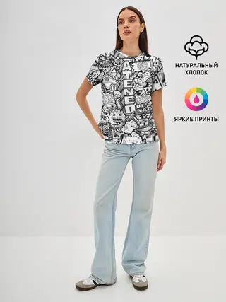 Женская базовая футболка / Doodle граффити
