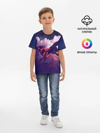 Мужская футболка оверсайз / Лиса бежит по облакам