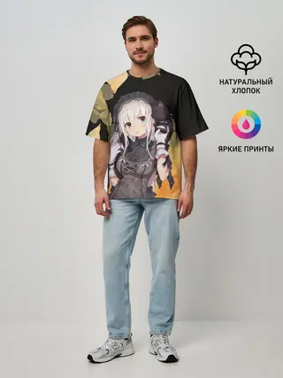 Мужская футболка оверсайз / Аниме девушка в интересном наряде