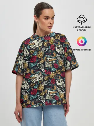 Женская футболка оверсайз / Hardcore tattoo