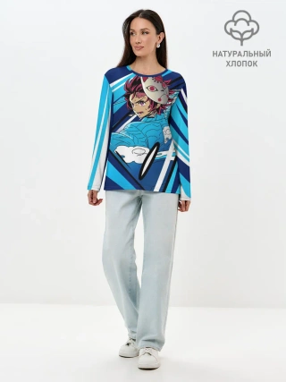 Лонгслив женский. Хлопок / Клинок рассекающий демонов
