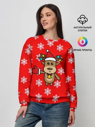 Женский свитшот / Оленёнок в снежинках