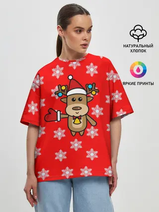 Женская футболка оверсайз / Оленёнок в снежинках