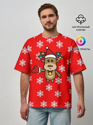 Мужская футболка оверсайз / Оленёнок в снежинках