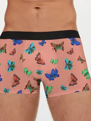 Мужские трусы боксеры / Бабочки на персиковом фоне
