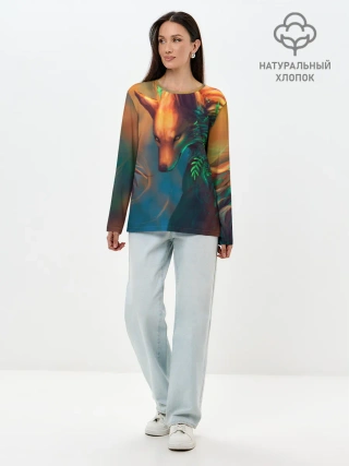Лонгслив женский. Хлопок / Волшебная лиса