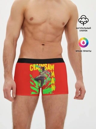 Мужские трусы боксеры / Человек-Бензопила с логотипом на красном