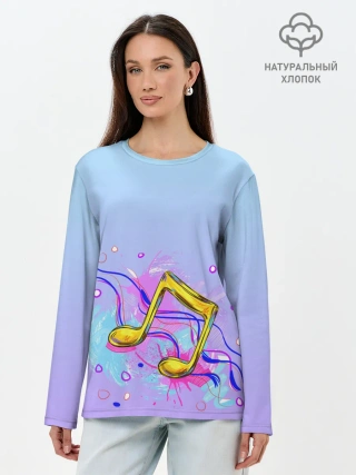 Лонгслив женский. Хлопок / ноты краски музыканту