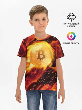 Детская базовая футболка / БИТКОИН ОГОНЬ