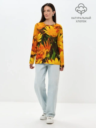 Лонгслив женский. Хлопок / Желтый цвет весны