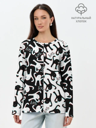 Лонгслив женский. Хлопок / МЕМ КОТ ЪУЪ СЪУКА