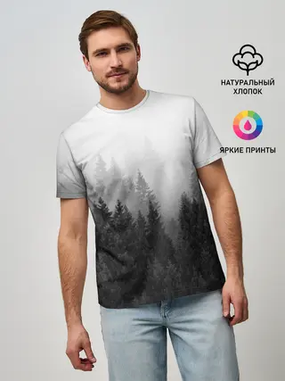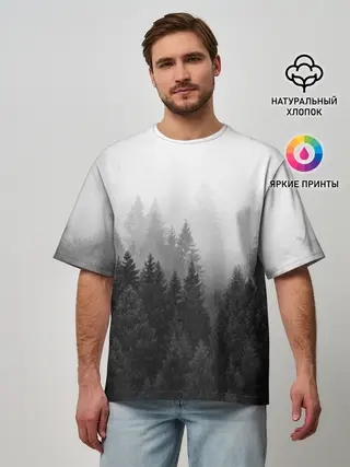 Мужская футболка оверсайз / Туманный лес