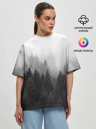 Женская футболка оверсайз / Туманный лес