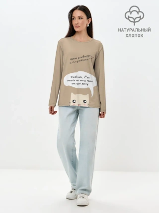 Лонгслив женский. Хлопок / Котик советует улыбнуться