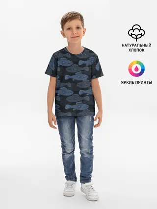 Детская пижама с брюками / Синие рыбы на темном фоне