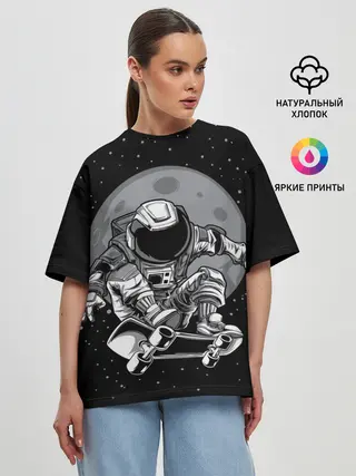 Женская футболка оверсайз / Скейтер в Космосе