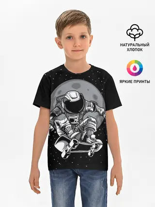 Детская базовая футболка / Скейтер в Космосе
