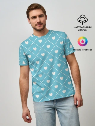 Мужская базовая футболка / Белые сердечки на голубом фоне