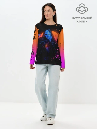 Лонгслив женский. Хлопок / Ведьмак в таверне
