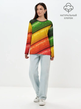 Лонгслив женский. Хлопок / Цветные линии