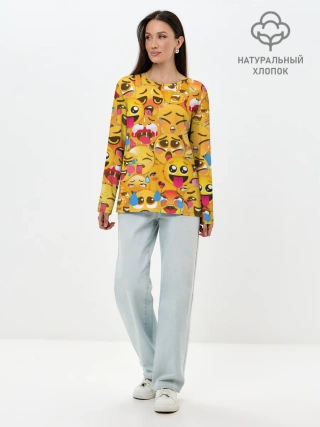 Лонгслив женский. Хлопок / Ахегао эмодзи паттерн