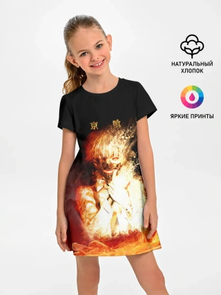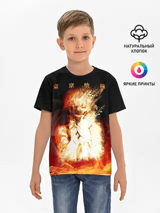 Мужская футболка оверсайз / Огненый Канеки Кен