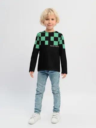 Детский лонгслив / Kamado Tanjiro зеленые квадраты